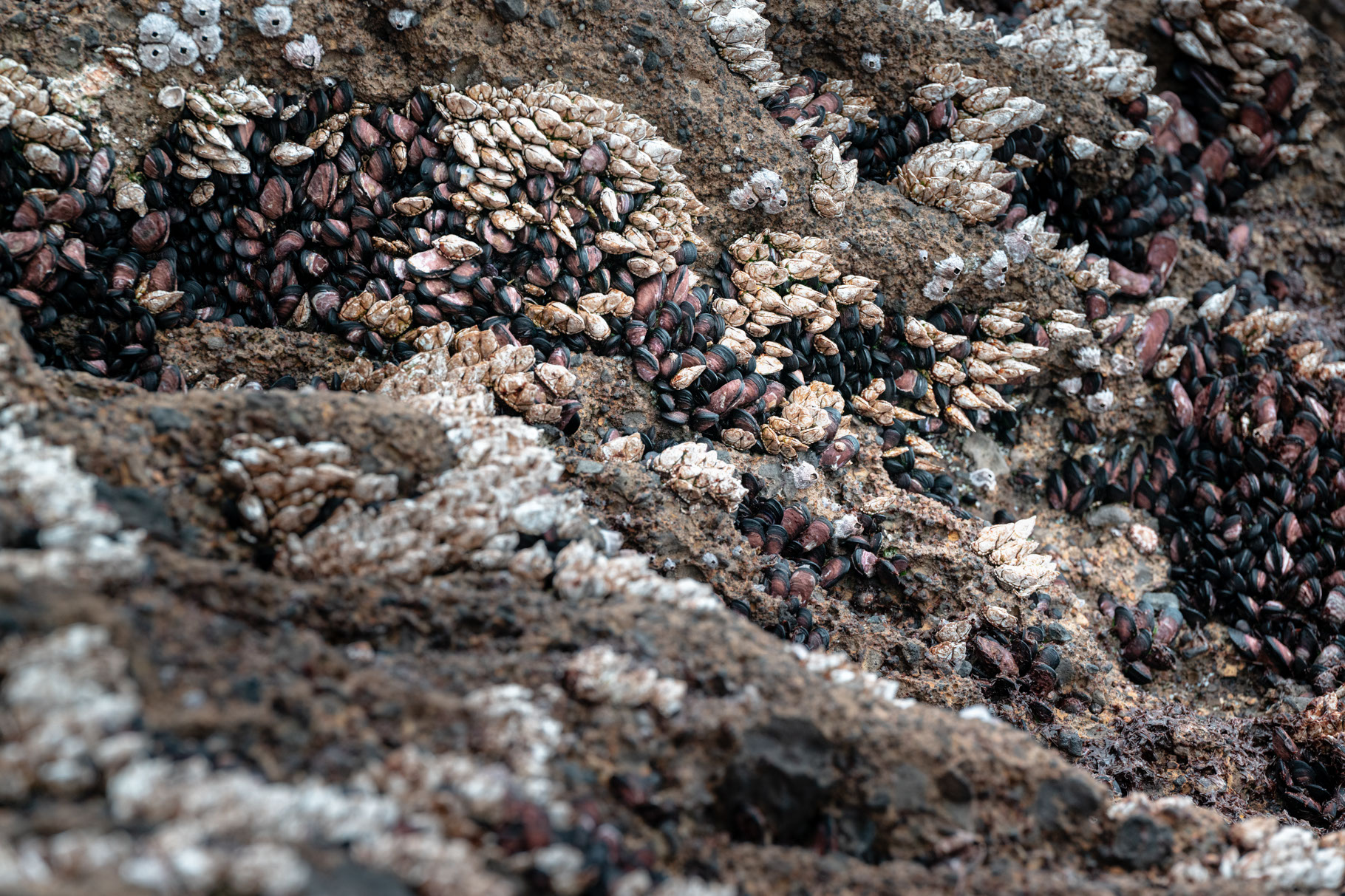 Tight clusters on rocky shores, both battered and fed by the crashing waves. The banks of these filter feeders, exposed for the time being by the low tide, are much easier to reach for harvesting than the fare usually collected by the Haenyeo (해녀) of Jeju.